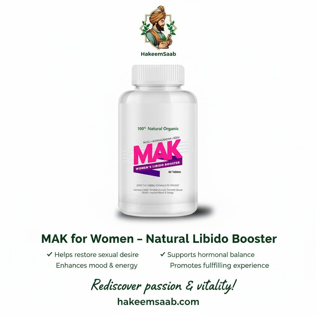 Rediscover passion and vitality with MAK for Women, a powerful herbal formula designed to support female libido, enhance desire, and improve overall intimate wellness. Specially crafted with a blend of natural ingredients and time-tested botanicals, this supplement works gently with your body to balance hormones, boost energy, and reignite the spark in your intimate life.