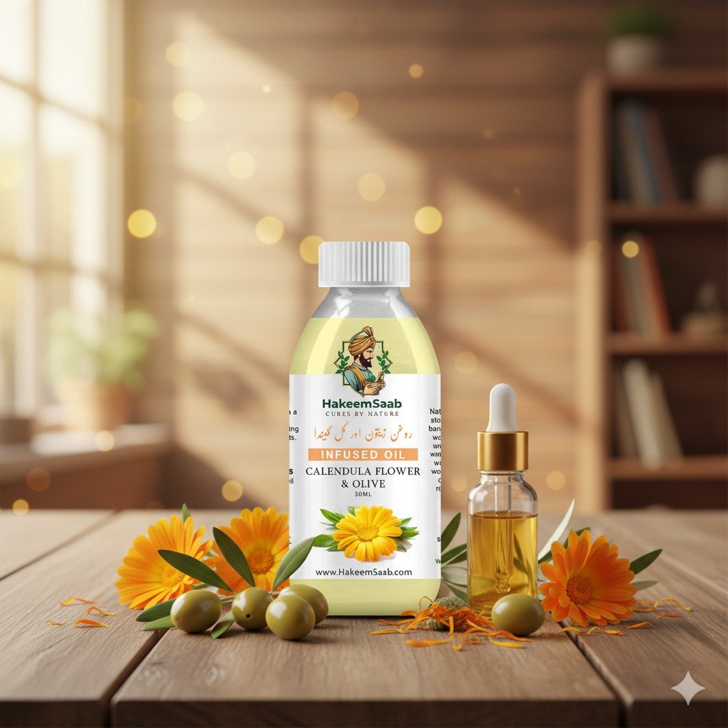 The vibrant Calendula flower, also known as Marigold (گل گیندا), is more than just a beautiful bloom—it’s a time-honored herbal remedy packed with healing properties. Infused with nutrient-rich olive oil, Pansari’s Calendula Flower & Olive Infused Oil combines the best of nature to soothe, protect, and restore your skin.